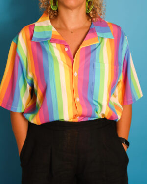 Introducing our fab Retro Pride Hawaiian Shirts! Made to have a boxy fit and a notch lapel collar, these shirts are perfect for any laidback scenario. Embodying a subtle nod…