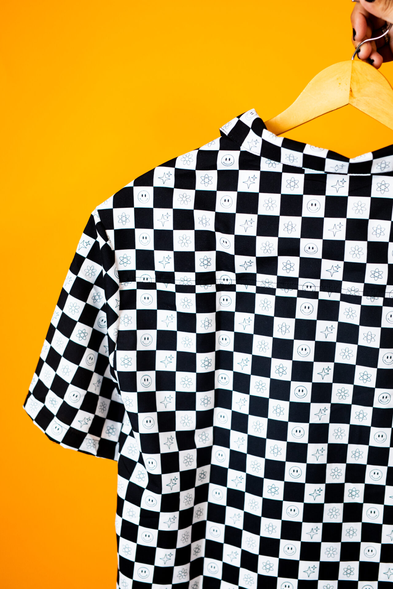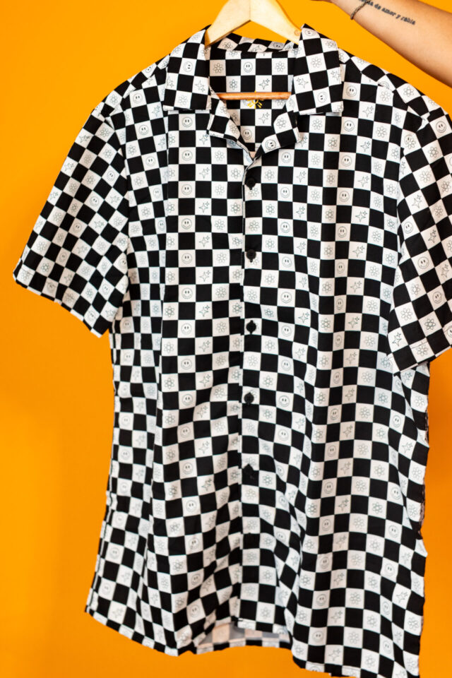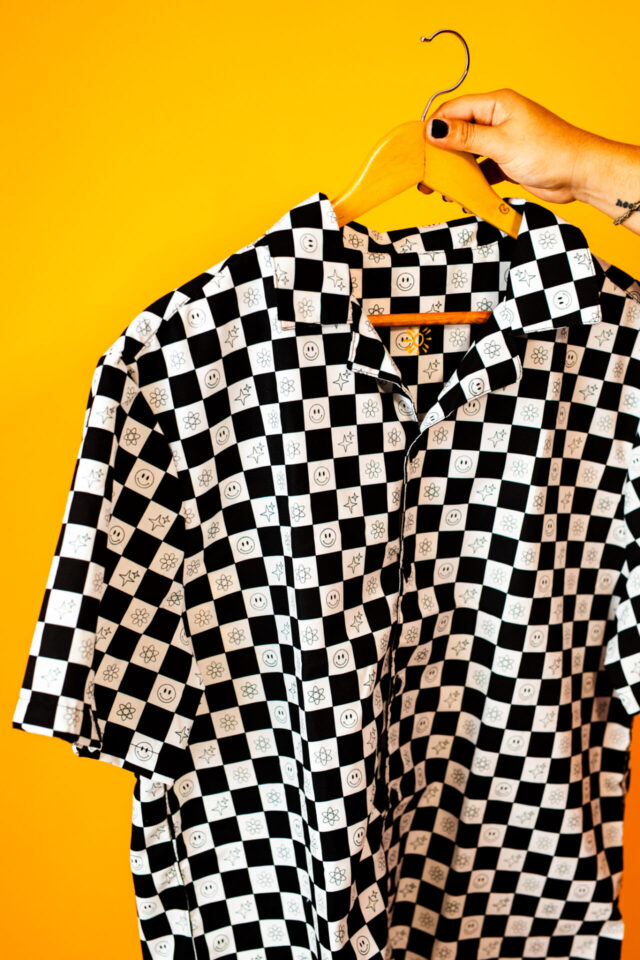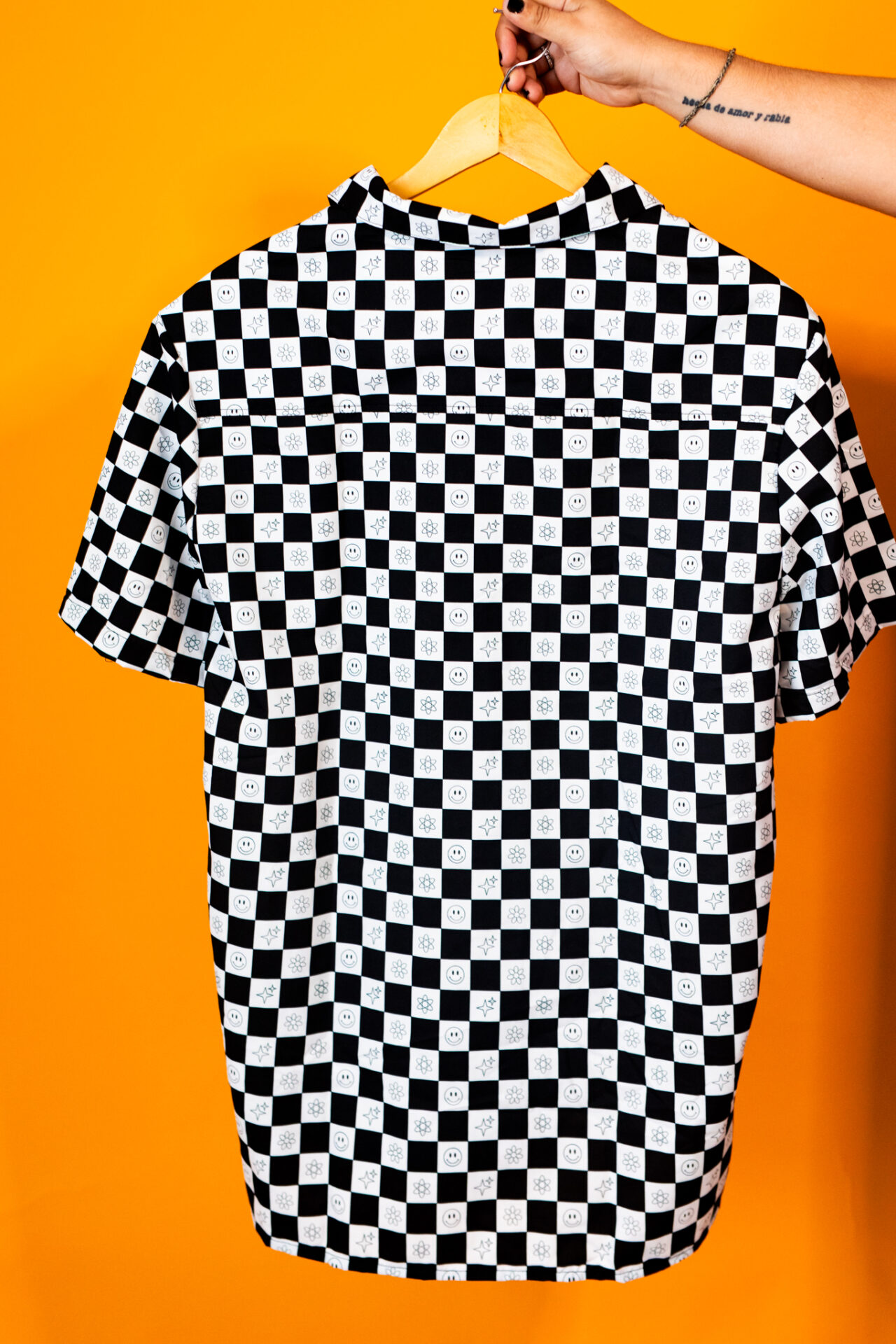 This statement piece features a captivating Bauhaus pattern with the vibrant colors of the queer flag. You’re bound to turn heads with this unique shirt full of dopamine. Don’t miss…