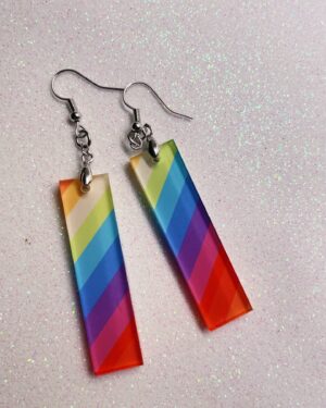A pair of dangly earrings cut in recycled acrylic! Made in our studio, sublimated acrylic drop earrings with our original patterns