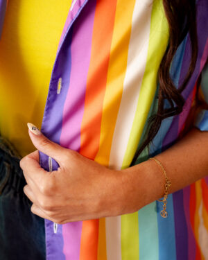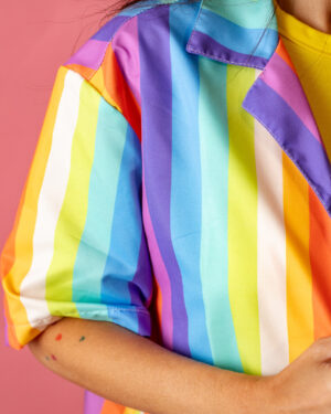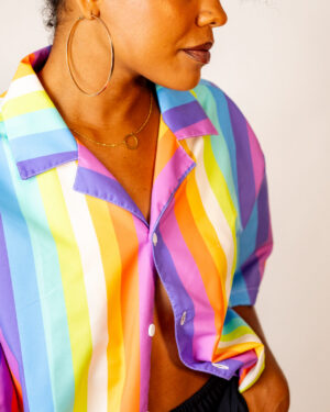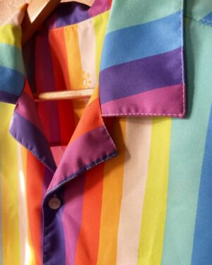 This statement piece features a captivating Bauhaus pattern with the vibrant colors of the queer flag. You’re bound to turn heads with this unique shirt full of dopamine. Don’t miss…